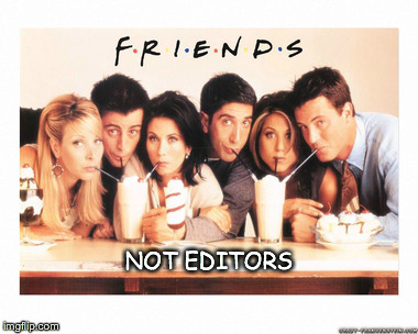 Editors have been doing this (hopefully) a long time, they’ve been involved in publishing for a while, and they’ve worked with lots of authors over the years. One of the most maddening things to say to an editor is that your friends think your writing is fine. That’s just trying to gang up on an editor (which is kind of silly) and — what? Force her hand? “My posse is bigger than your posse! My friends will kick your ass for dissing this phrase!”