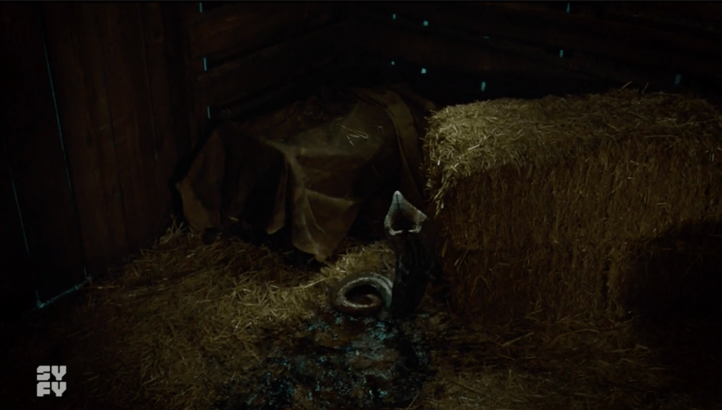 Okay. So we left off with the goo transferring from Waverly to Wynonna, and the goo is now lodged in Wynonna, where it seems quite pleased. We’ve also got the mysterious 1952 Purgatory Fair plate to figure out, and the overhanging “they’re coming” houseguests creep-out still in the mix. This week’s episode did not revisit the Tucker/Mercedes/Beth axis of evil, but holy shit there was so much else going on that it’s okay.