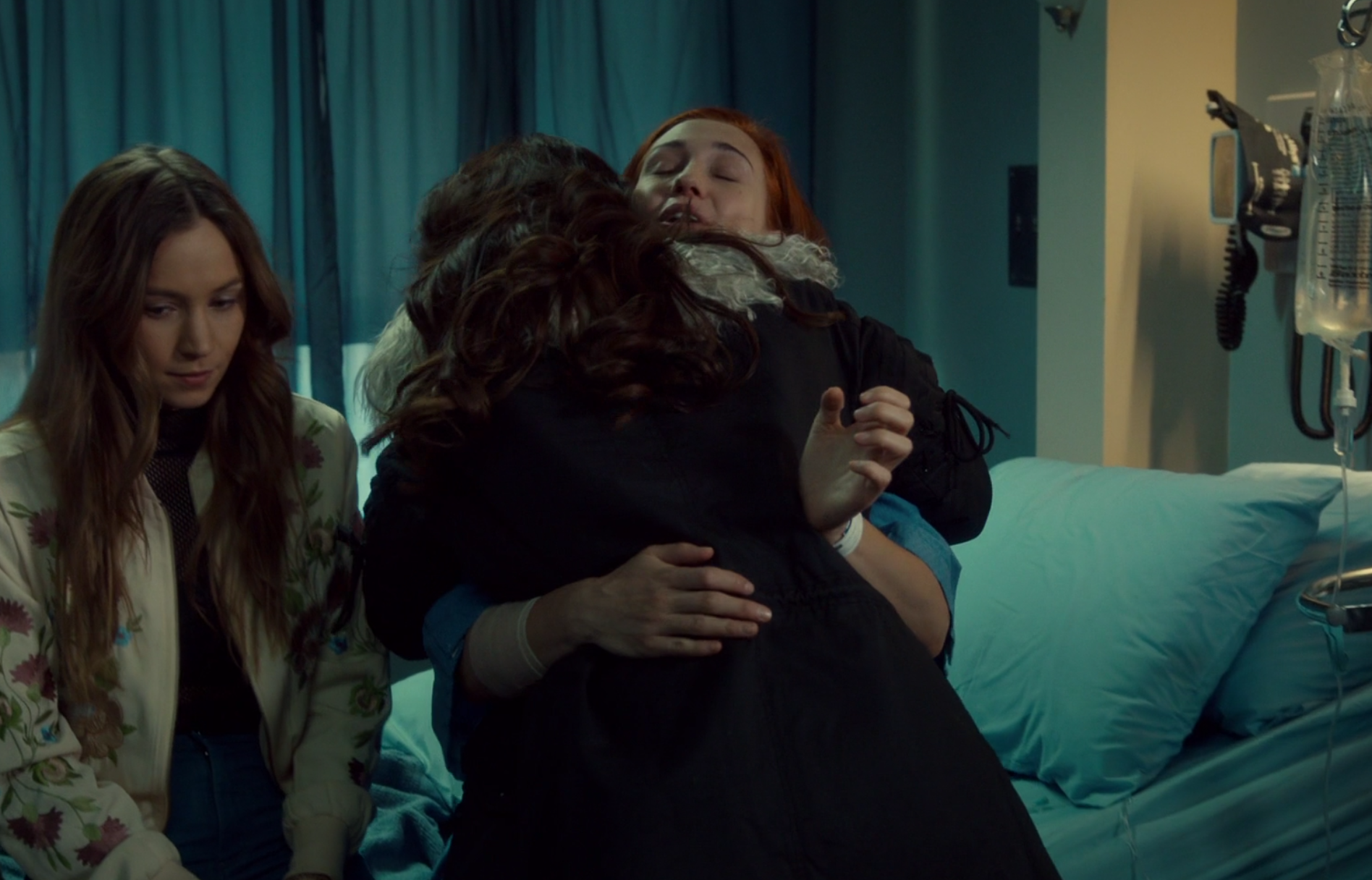 We jump over to Nicole’s hospital room where she’s in a bad way, friends. Sweating and writhing in pain. Wynonna is there and Nicole tells Wy to do something for her, and we know what’s coming and I’m practically sobbing. She tells Wy that if this gets bad, she doesn’t want to be kept alive by a machine and Waves will never let her go, so she asks Wy to do it for her and — hold on…need a tissue — and Wy says she can’t do that and Nicole says she knows she can and that Wy is the only one Waves will forgive for doing it.