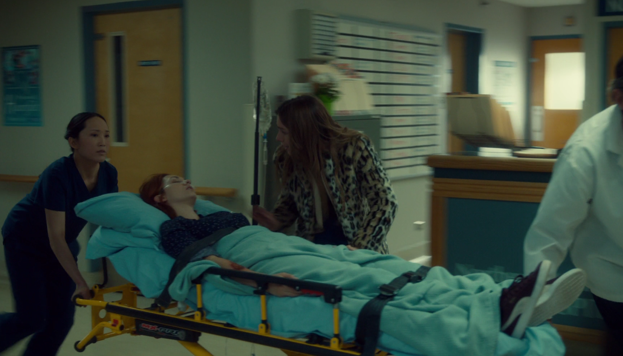 Back at the hospital, Waves is sitting at Nicole’s bedside talking to Nicole even though she’s comatose. “Why didn’t you tell me,” she says, and then Shae comes in with two coffees (okay, this Shae seems legit and a nice person, so clearly we need to know WTF NICOLE) and then Waves asks how Shae and Nicole met and Shae tells her it was while rock-climbing near Vegas. Shae says, “Brittany live and a big win at the slot machines’ll do that to you. We got married in a fever.” But then things cooled off, she says, and then Nicole starts to writhe in pain and she’s partially awake and a doc comes in and oh, this is convenient that Shae is a doctor because the hospital doc wants to give Nicole something for the pain and Shae tells him which one to use and Waves realizes she doesn’t know what Nicole’s drug allergies or sensitivities are and she gets this stricken look but Shae steps in smoothly and says she knows this, basically, because Nicole had a rock-climbing accident and had to have surgery, which ruined their honeymoon.