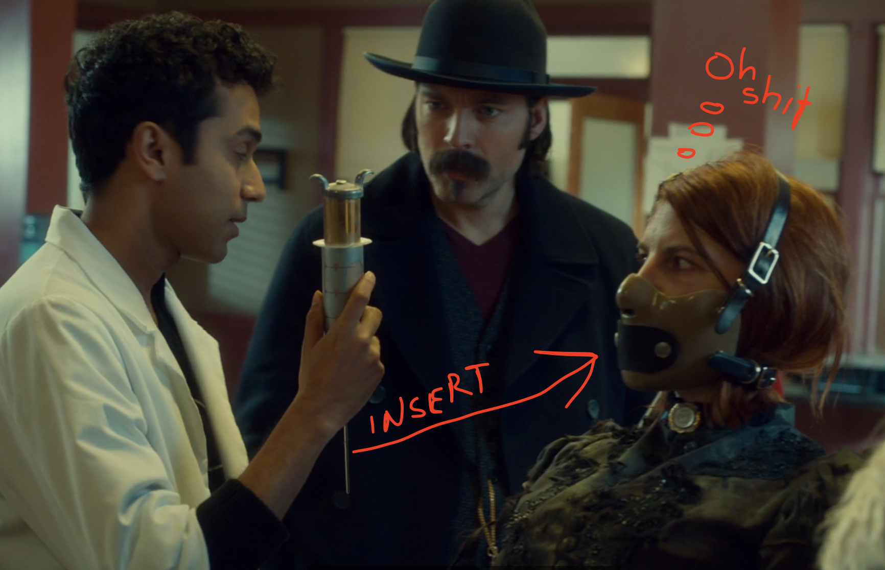 We hop on over to Nedley Central and Wynonna comes in with Doc. HA HA they’ve totally Silence-of-the Lambed Mercedes, you guys!