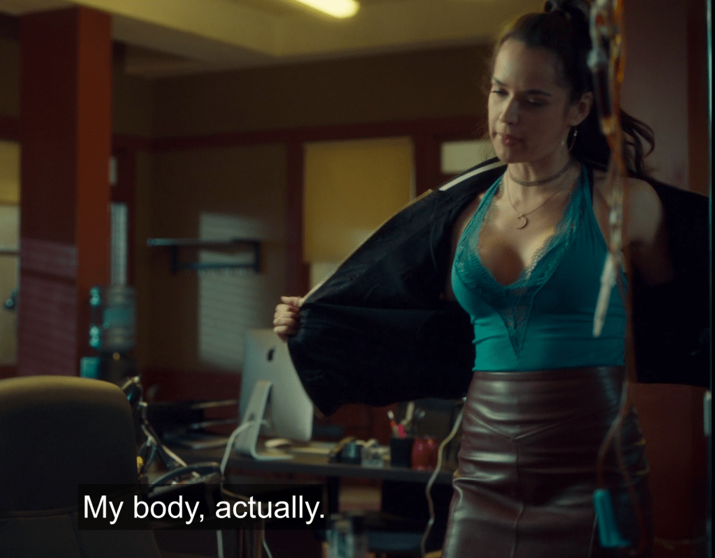 Jump over to the lab at Nedley Central where Jeremy is working. Rosita comes in and he’s stoked thinking she’s going to help him with the formula and she’s all, no, I’m wanted for my body, actually.