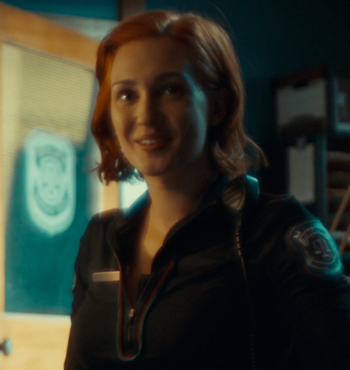 Next scene is Nicole at a desk in the main sheriff’s office demanding, with frustration, why the hell Lonnie isn’t using the right form, dammit. Don’t scratch out missing “person” and write “missing pug.” Use the “missing animals” forms! Lonnie comments that basically anybody who has an animal in Purgatory is bound to lose it, what with all the coyotes around and Nicole is all, “coyotes. Riiiiiiight.” Then she looks at a framed photo of Nedley on the wall and says she misses him and she’s trying her best.