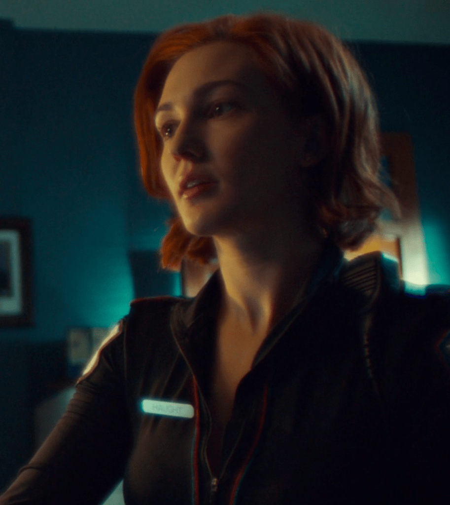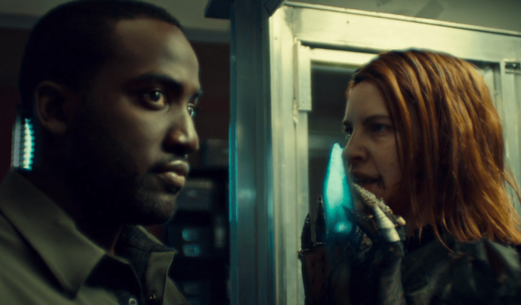 Back with Jeremy somewhere in alt-Purgatory, Rosita shows up and puts a gun to his head and asks if he’s lost. He asks if she’s the asset. She tells him to call her Rosie and says that Dolls didn’t make the rendezvous, and does this mean that…yes, Jeremy says, affirming that Dolls is dead, that Doc shot him but that Doc is dead, too. Good, Rosie says. Jeremy tells Rosie that he thinks BBD has been lying to them. He says that Holliday KNEW things and Rosie scoffs but then Jeremy asks her how she ended up working for BBD, how she ended up embedded in Doc’s gang, and hell, what she ate for breakfast and she tries, but can’t and he immediately thinks it’s mind-altering drugs in the water supply.