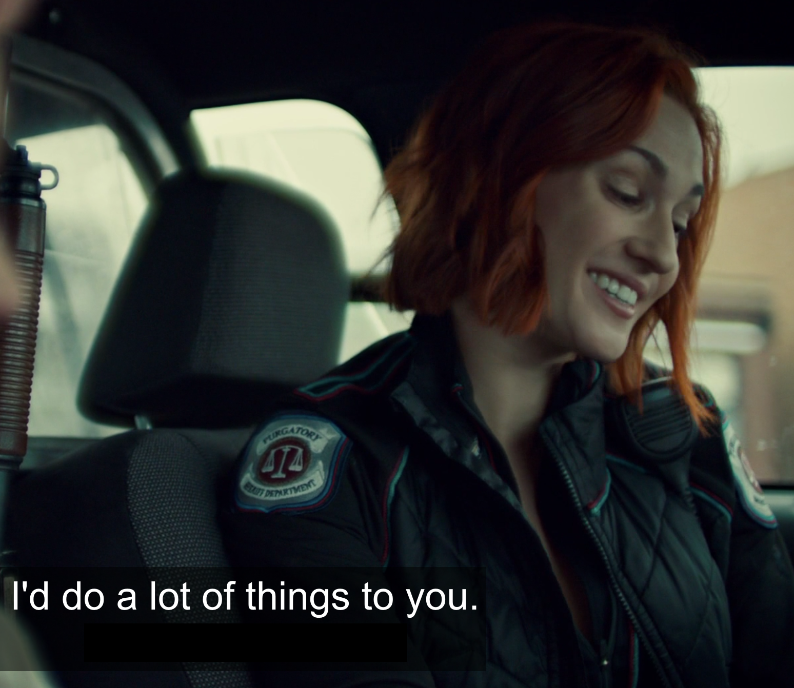 Okay, we are now on the outskirts of alt-Purgatory by the sign, where Jeremy finds Dolls. For some reason, Dolls had driven to the edge of town, gotten out of his vehicle, and Jeremy found him lying there. He tells Jeremy to “find the asset” and “complete the mission” and Jeremy is freaking out and then Dolls kind of laughs and says that he killed Doc, he did it, and then he says “But it felt…empty. I think he was my friend.” And then he gasps and he kind of has his dragon eyes for a moment and then he says, “Wynonna,” like he remembered with that last gasp who he was and a single tear courses down his cheek YOU GUYS WHAT THE HOLY FUCK WE NOW WATCH DOLLS DIE AND I CAN’T EVEN WITH THIS HORRIBLE WHAT IS HAPPENING I HATE ALT-PURGATORY WITH THE FLAMING HEAT OF A THOUSAND SUNS and Jeremy screams “NO NO DOLLS” I FUCKING CAN’T