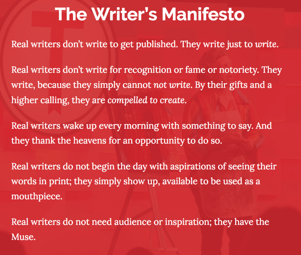 Writer Jeff Goins wrote a manifesto for writers, and I totally agree with it. Here it is: